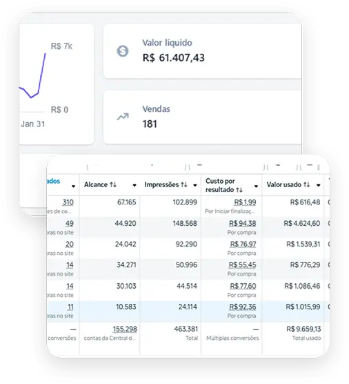 Recomendamos um investimento mínimo de R$2.000 a R$5.000/mês, somando os canais Meta e Google Ads.