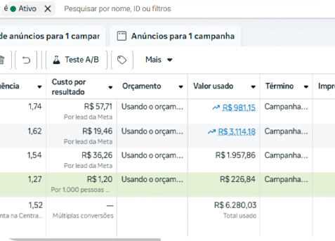 No Meta Ads, os resultados geralmente começam a aparecer em até 2 dias após a campanha entrar no ar.